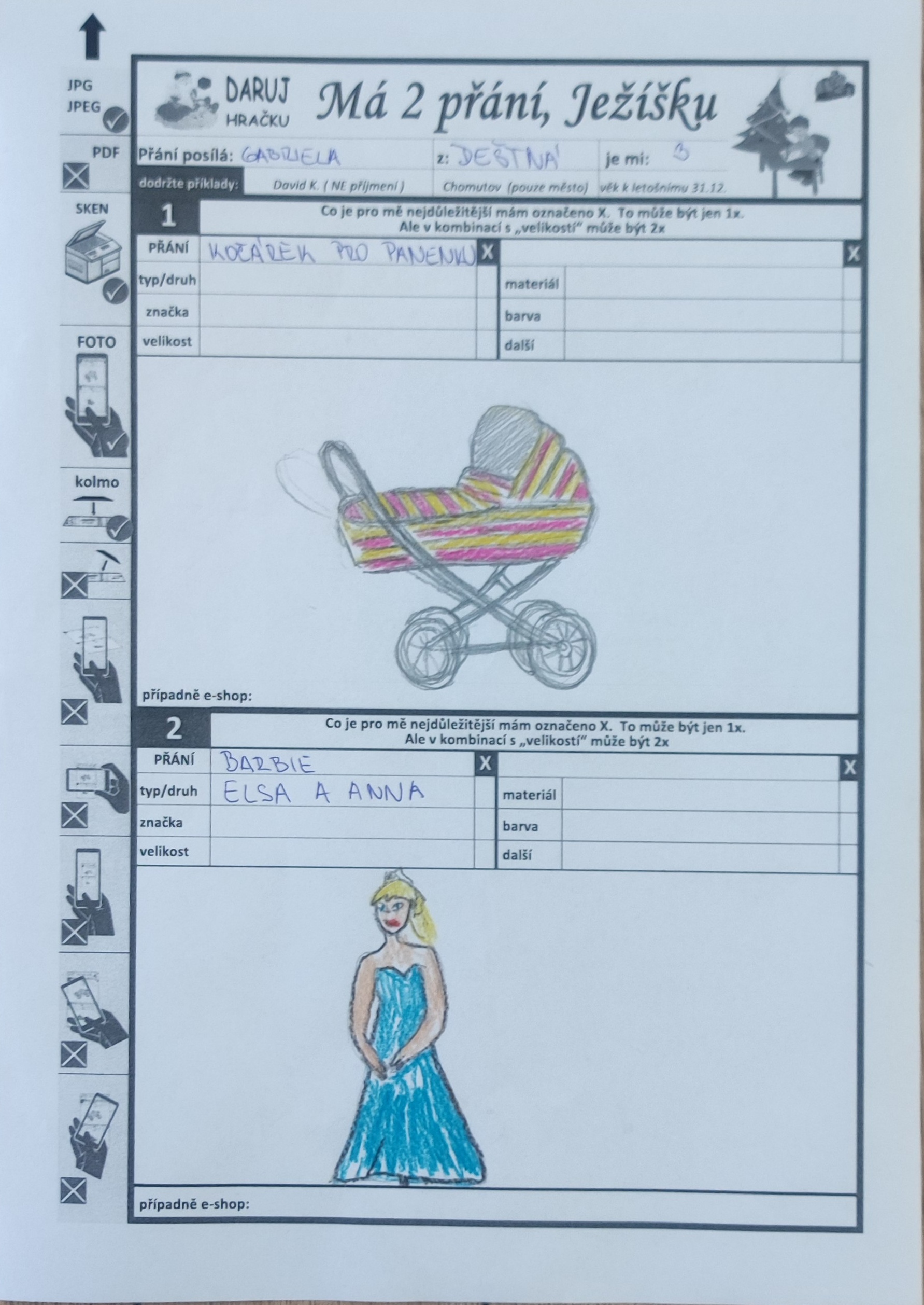 Zájmy: panenky, písničky, tancování, kreslení