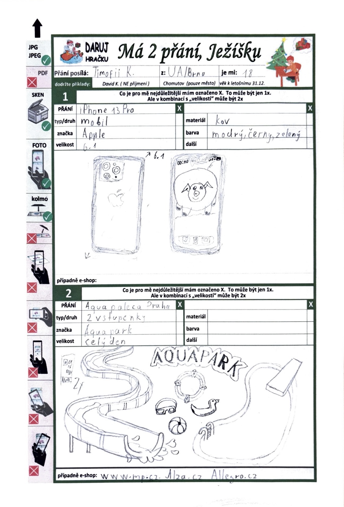 Poznámka: Tymofii studuje online VŠ, obor pedagogika. Tento rok úspěšně dokončil jazykový kurz z češtiny.