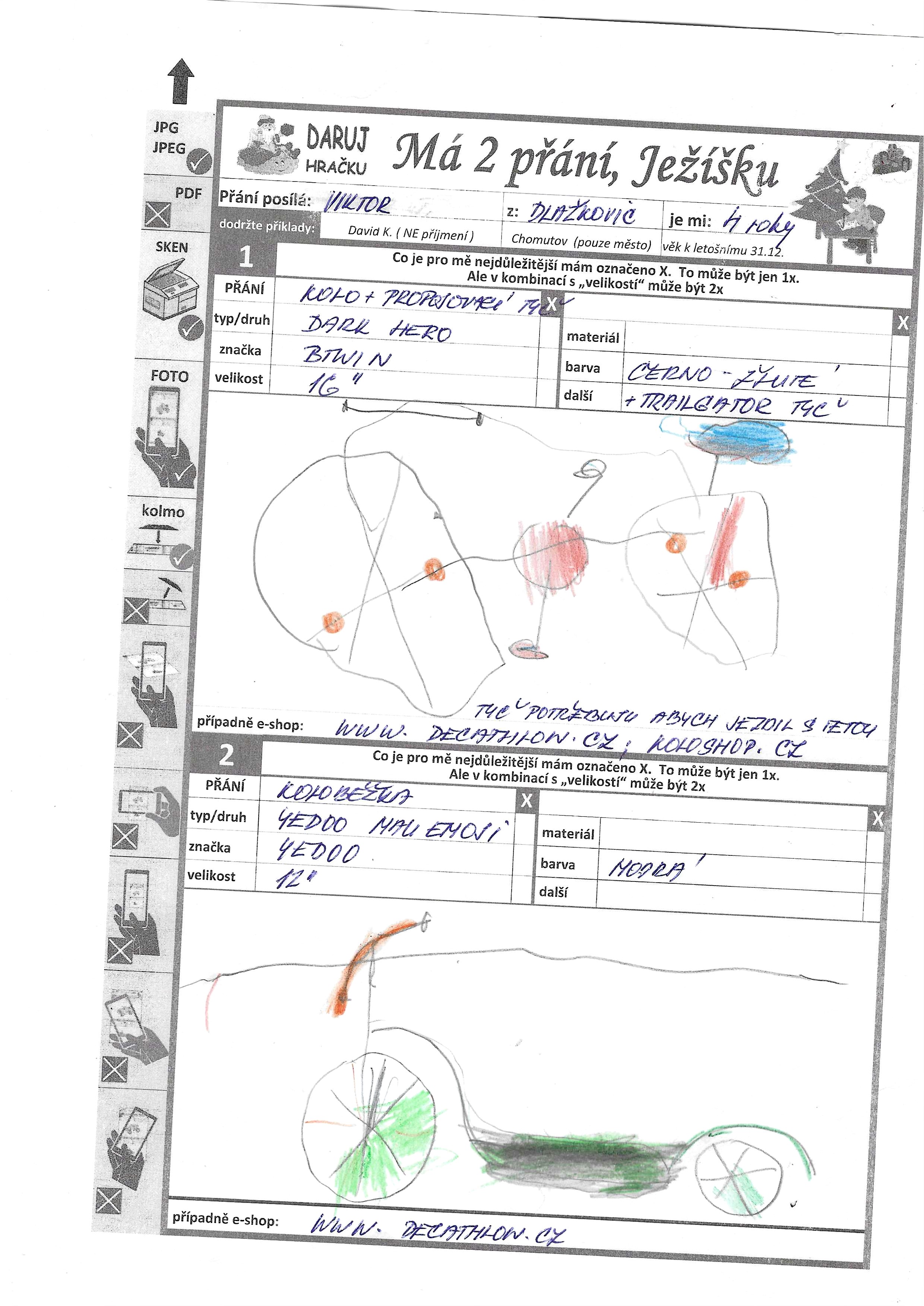 Zájmy: sport, pohádky, koloběžka