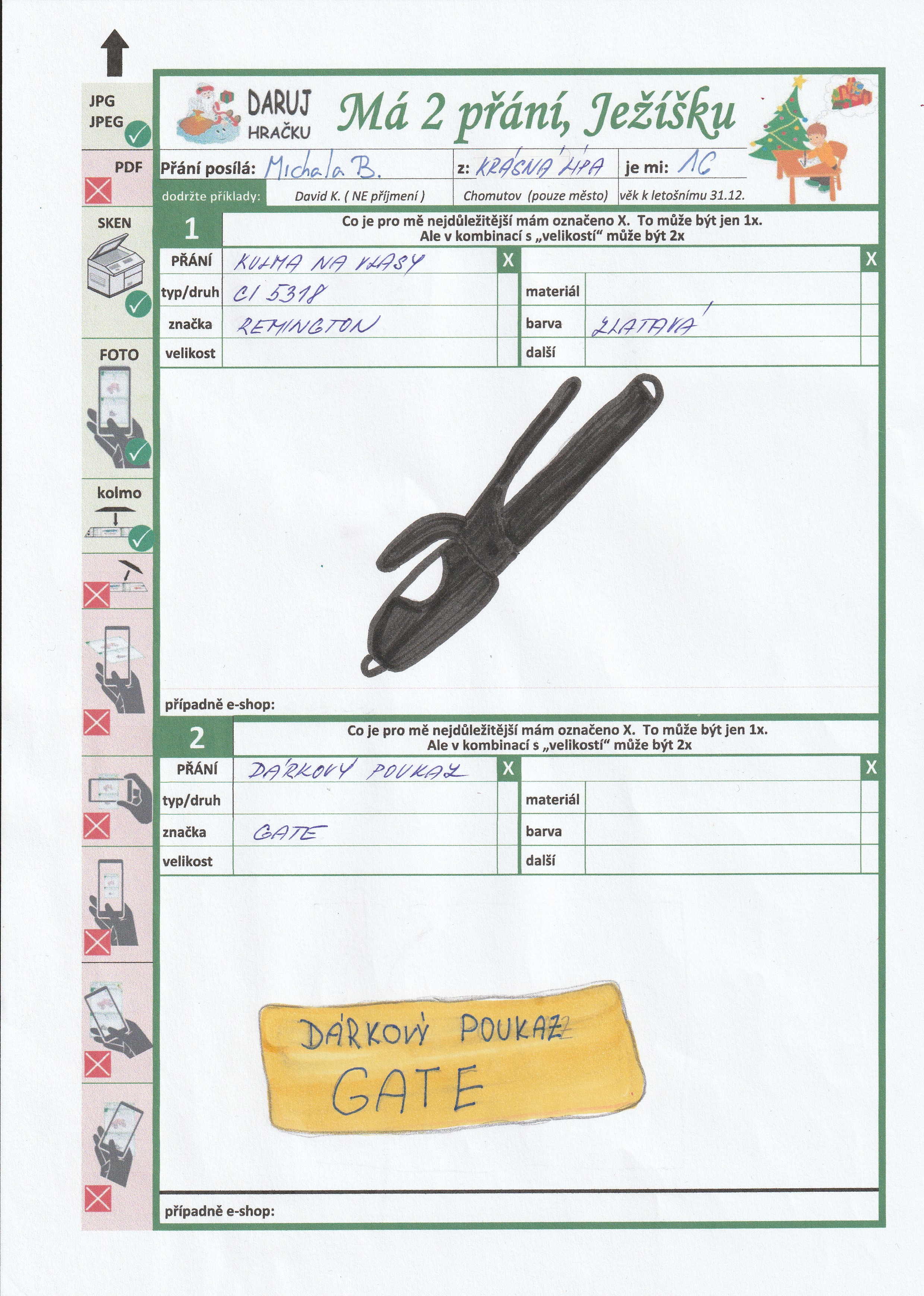 Poznámka: Ahoj Ježíšku, velice ráda si kreslím a poslouchám hudbu. Skoro na každé akci, kterou jako domov pořádáme, zpívám. Zajímám se o módu, focení a kosmetiku.