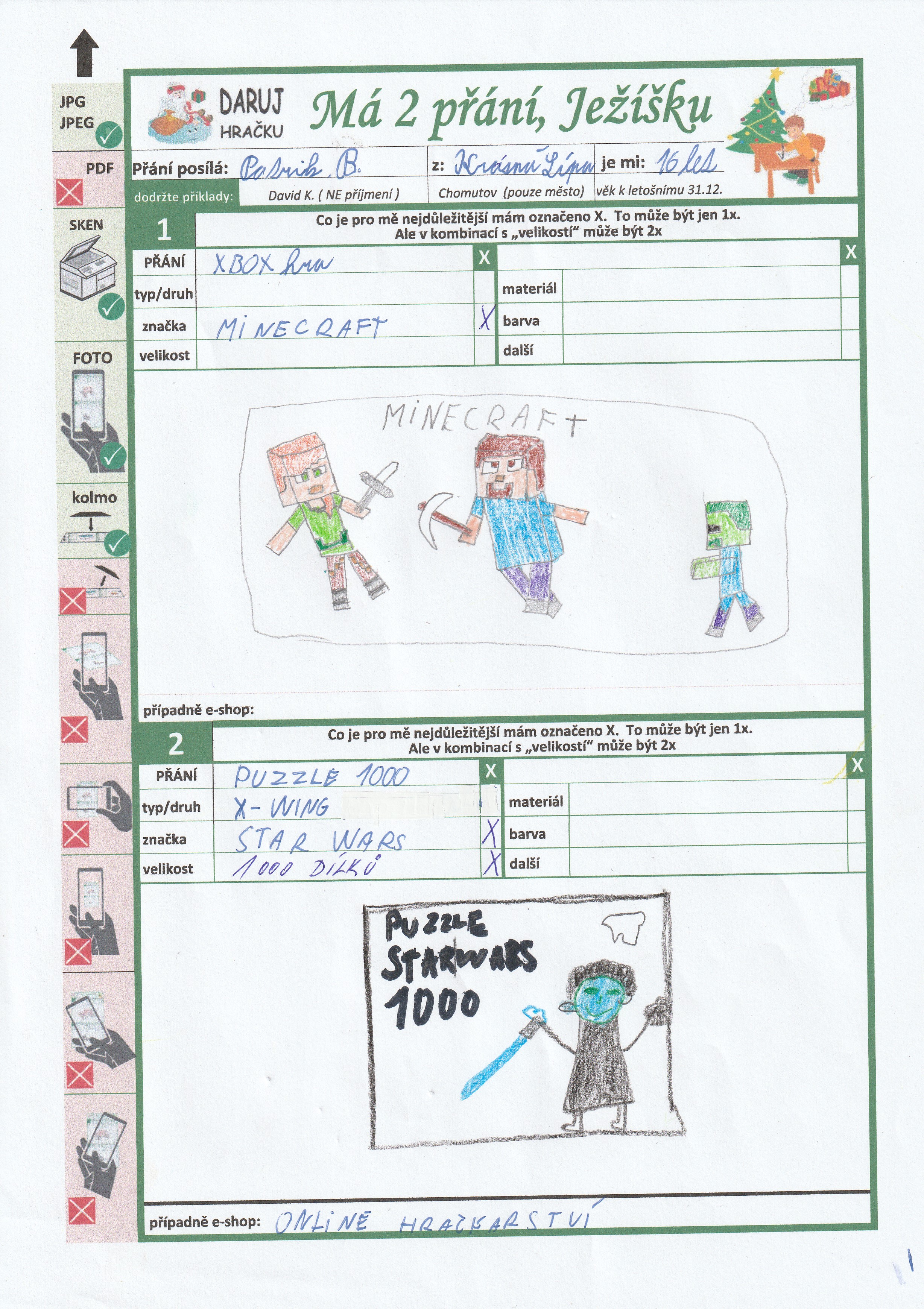 Poznámka: Ahoj Ježíšku, jsem kluk, co moc rád staví lego. Taky mám rád knížky a Star Wars.