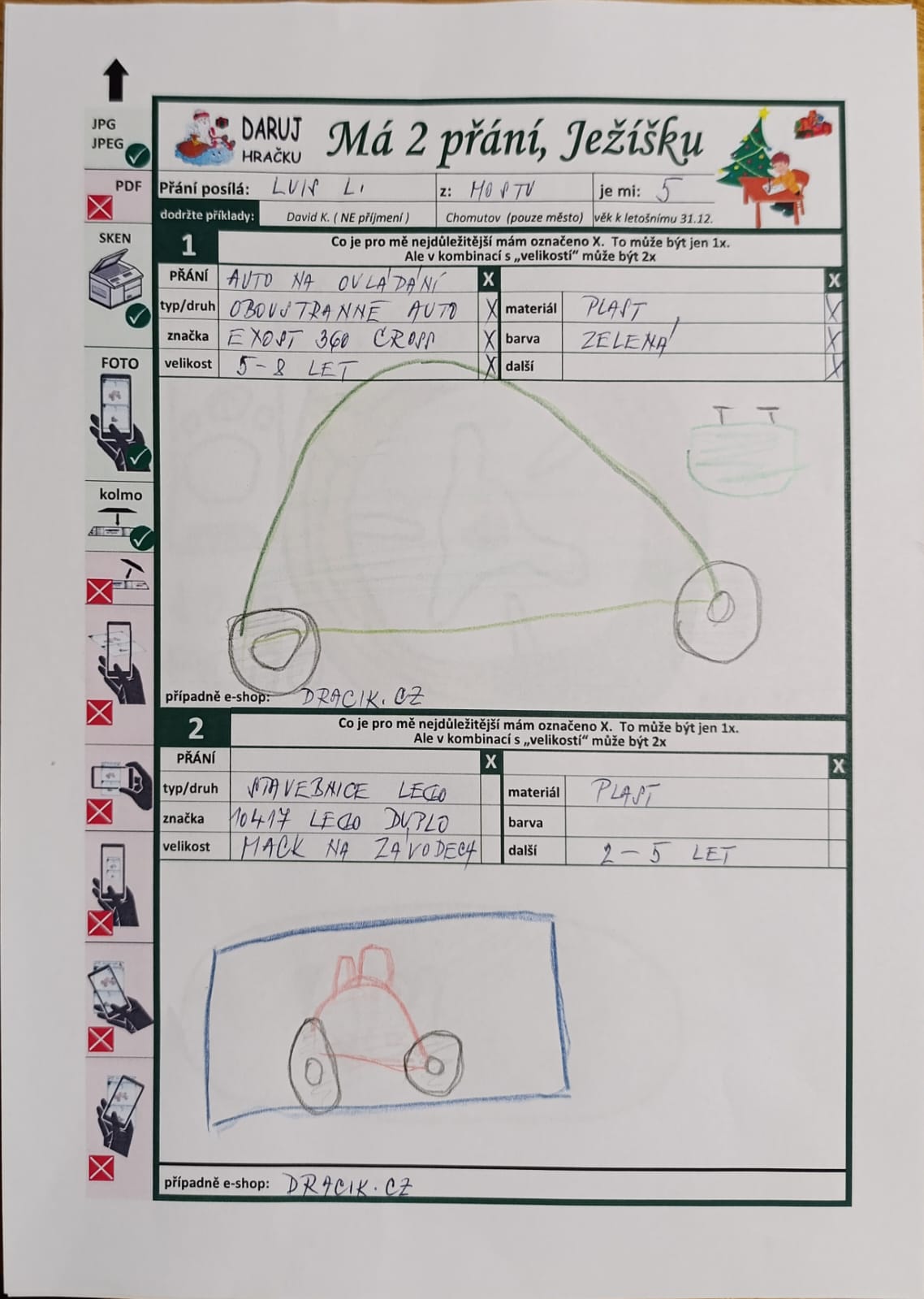 Originální přání: Stavebnice lego oboustranné auto
