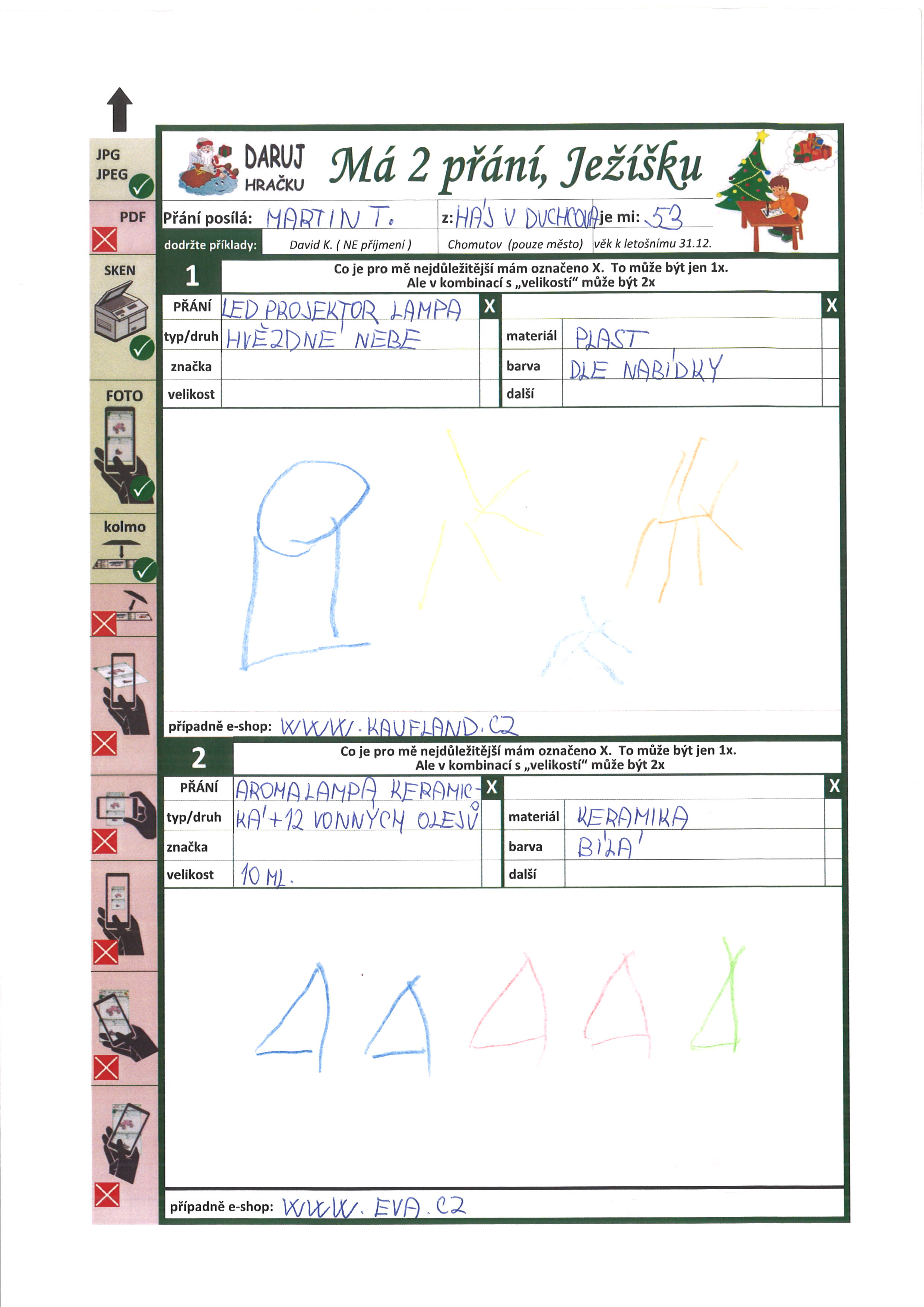 Poznámka: Moc rád poslouchám hudbu, sleduji televizi. Baví mě kreslení na jakékoliv téma a hraní společenských her
