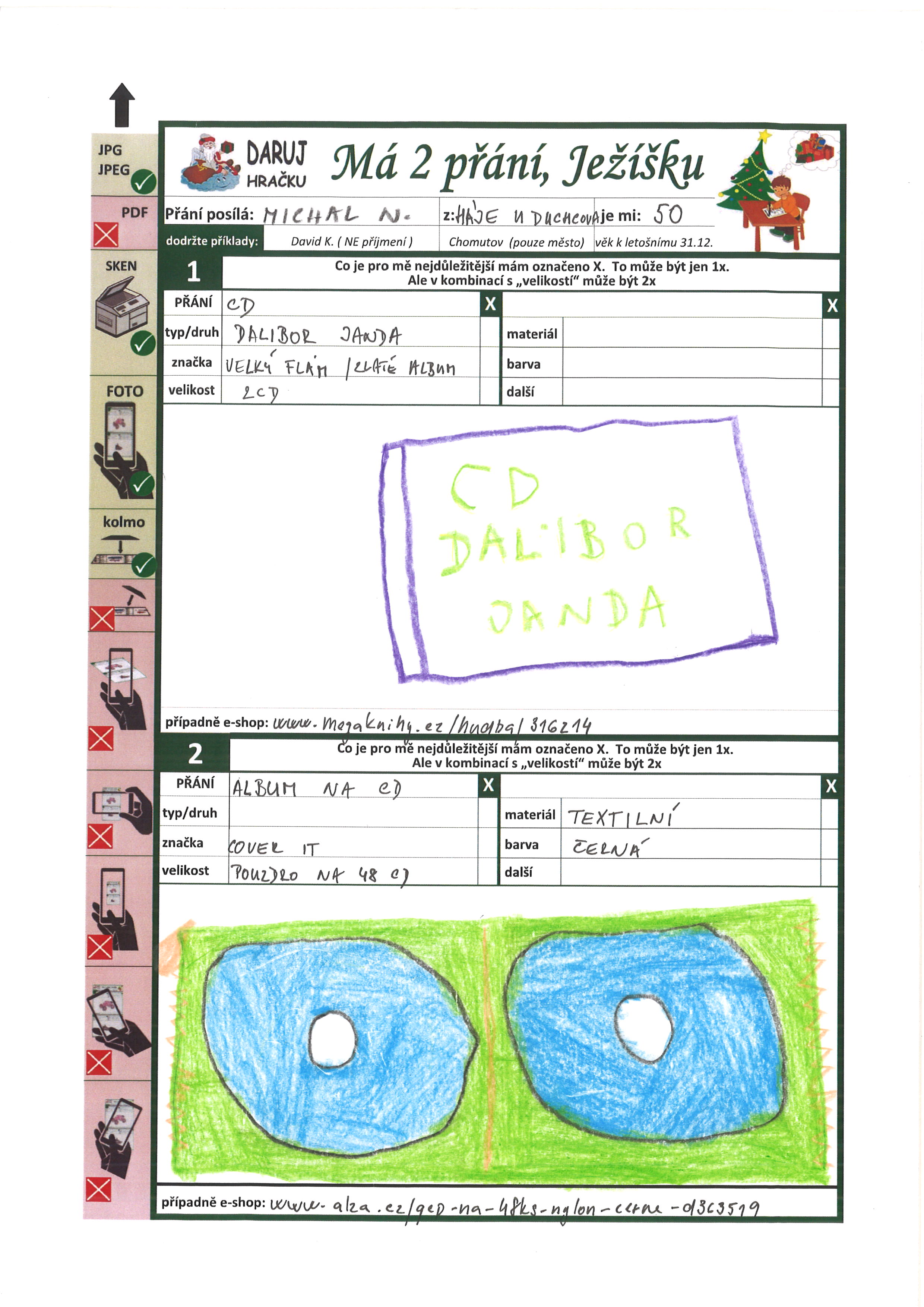 Poznámka: Mou zálibou je kreslení obrázků, které věnuji nejčastěji mamince, rád jezdím na kole