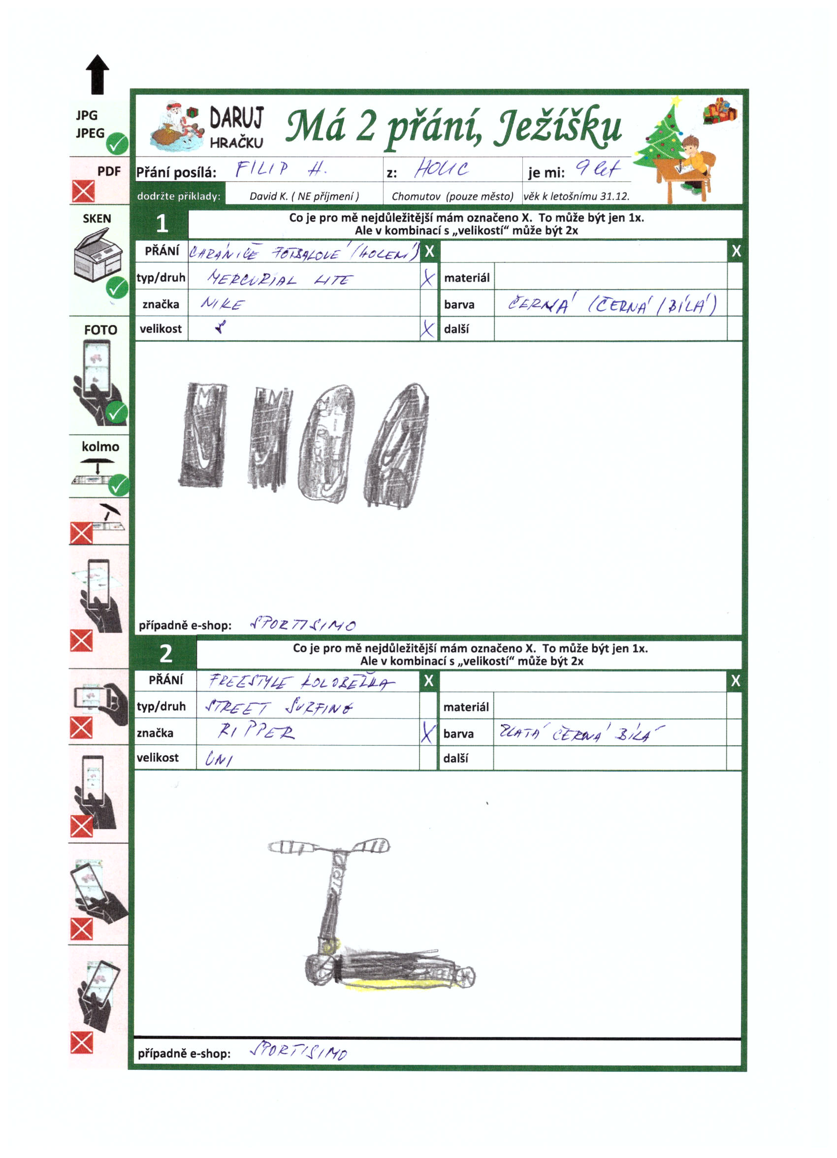 Zájmy: fotbal, PC hry, společenské hry, pump track